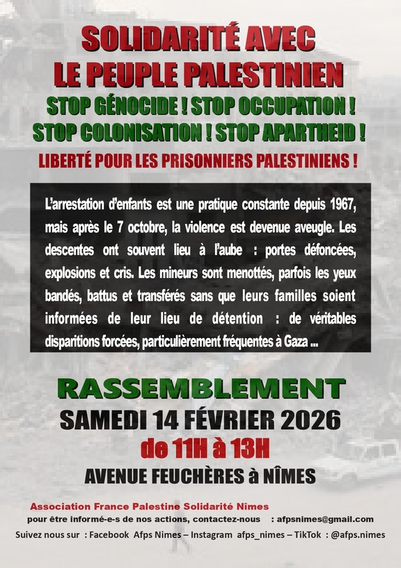 - RASSEMBLEMENT DE SOLIDARITÉ AVEC LE PEUPLE PALESTINIEN : LEVÉE DU BLOCUS ! OUVREZ GAZA ! NON À LA LOGIQUE COLONIALE DU PLAN TRUMP !