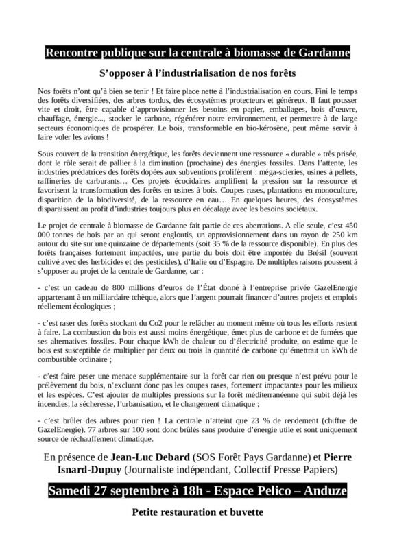 "Tous au Gardanne-vous" - Rencontre publique sur la centrale à biomasse de Gardanne