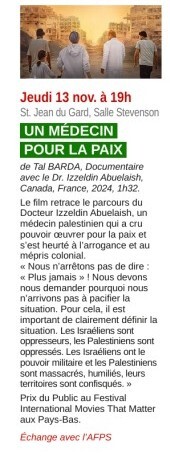 Dans le cadre du festival "Automne palestinien" organisé par l'AFPS du 13 au 29 novembre
