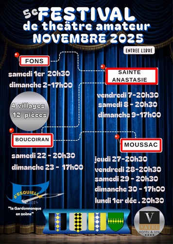 Cette année l'association culturelle "Ponts d'Esquielle" organise pour la 5ème fois un festival de théâtre amateur. Il regroupe 11 troupes amateures gardoises et une parisienne en clôture.
