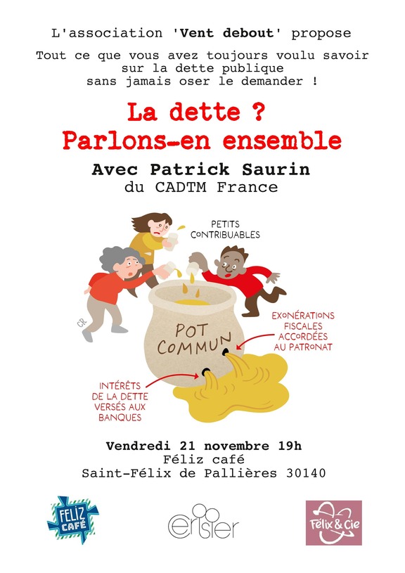 La dette ? parlons-en ensemble. Avec Patrick Saurin, membre du CADTM ( Comité pour l'Abolition de la Dette du Tiers Monde).