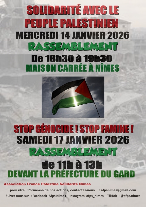 - RASSEMBLEMENT POUR LA FIN DE L'OCCUPATION, DE LA COLONISATION ET DE L'APARTHEID ! RESPECT DU DROIT à l'AUTODÉTERMINATION DES PALESTINIEN.NE.S, DROIT AU RETOUR DES REFUGIÉS !